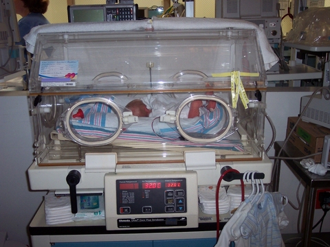Andrew in his "isolet" -- his 2nd NICU home -- where he is more responsible for maintaining his own body temperature.
