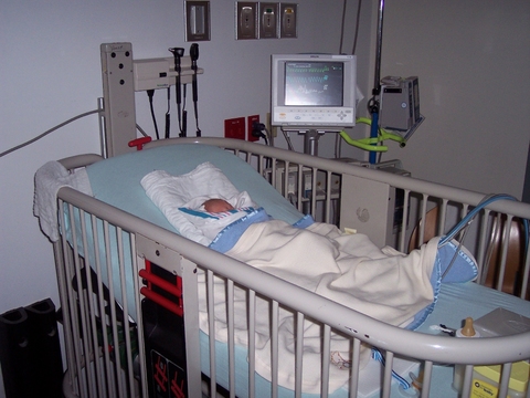 ![]() Sun May 15 15:42:52 2005 Surgery was a little over an hour, so he was back in his room before 11am. This photo was in the mid-afternoon. |
