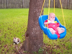 Patches watches me very intensely when I am swinging back and forth.