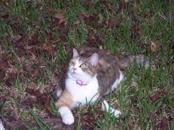 My cat, Patches. Her colors and patterns match the bricks on our house...