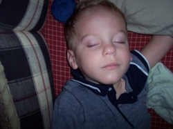 Sat 03 Nov 2007 02:52:16 PM A tired Andrew on the ride from Tavares to grandma and granddaddy's house, in our new GMC Acadia. |