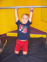 Andrew, in front on O2BKids, on his first day of 3 year-old preschool classes there.