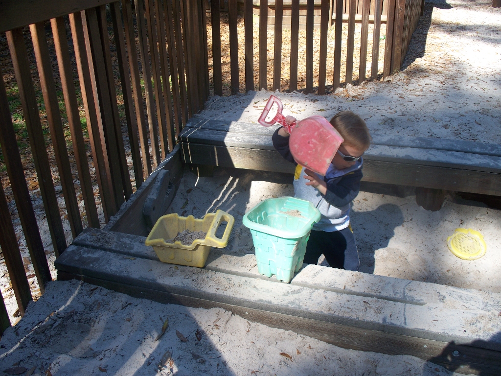 ![]() Mon 16 Feb 2009 11:53:15 AM Andrew digs for dino fossils in the giant sandbox at one of the local public parks. |