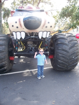Monster Jam tickets sold out before we got any, but Andrew, Mom, and Dad did go around town and have a look at a few of the trucks. This one is Taz.