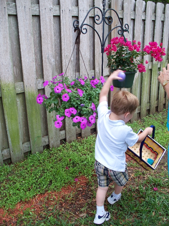 Easter egg hunting at Nana and Papa's.