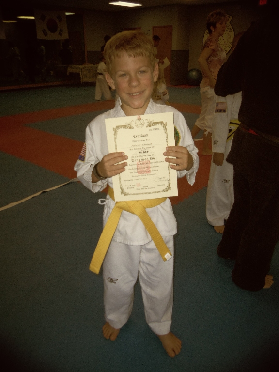 Album: Photo Gallery / Andrew Lester Hightower / Andrew, 2013 / Andrew, May-Aug 2013 / Andrew gets his yellow belt