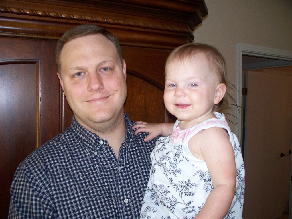 Dad and Gracie after church, the Sunday after Andrew's T1DM diagnosis on Thursday.
