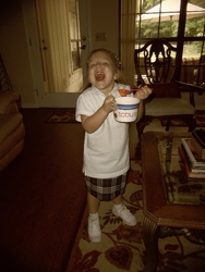 Mom bought Gracie a frozen yogurt treat to celebrate her fist week of Pre-K4.