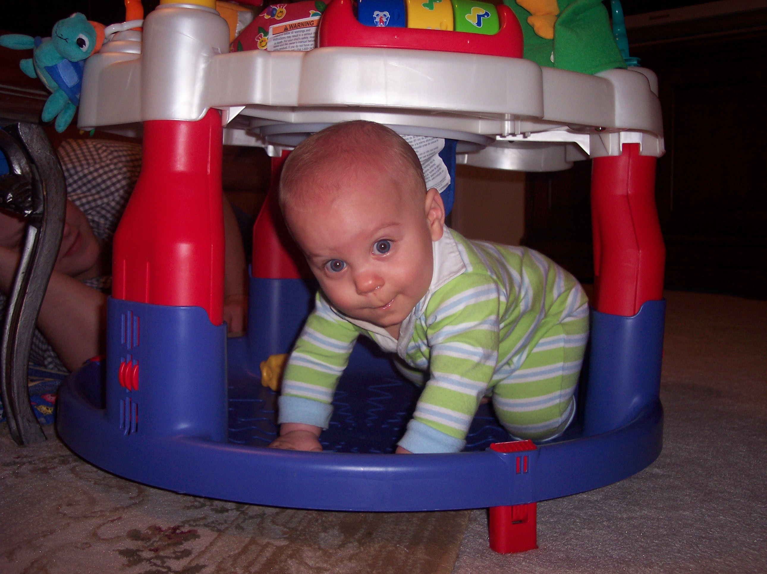Andrew crawled into the bottom of his Little Einstein toy while playing in the floor with dad. He has had a cold for a few days, runny nose and coughing...
